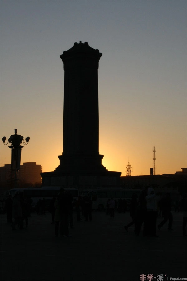 - 太阳缓缓升起,我站的位置,阳光恰好被纪念碑挡住,好像是石碑发出了炫目的光芒。