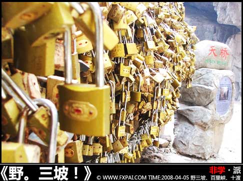 P.S.近况,从野三坡回来就入住西直门的房间了,今后上班就要和无数的北飘们一起挤公车,给别人打工,为自己果腹……很可能奋斗很多年都没有结果,也可能N年之后因为混不下去而离开这里。生活中的每一次选择都是惊险重重,但我依然会如履薄冰,不断前行!